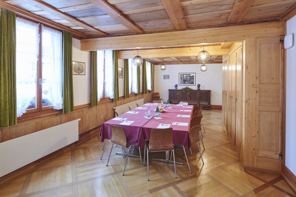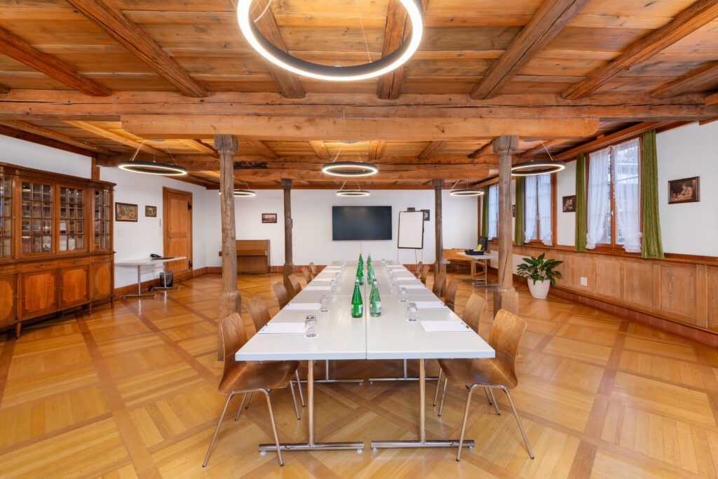 Lassen Sie sich während eines Seminars, einer privaten Feierlichkeit oder eines gemütlichen Abendessens zu zweit, kulinarisch verwöhnen. Hochzeitsfeste finden in der Schützenstube, im Dachstock des alten Schulhauses oder in der Schulstube statt, Geschäftsessen in der Burestube, in der Sommerlaube oder in der Toufistube. Für ein gemütliches Tête-à-tête steht der authentische Hühner-, Schweine- oder Kuhstall zur Verfügung.